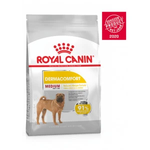 Hondenvoer voor middelgrote honden met een volwassen gewicht van 11 tot 25 kilo en een gevoelige huid Is jouw hond gezond maar kunnen de huid en vacht wel wat ondersteuning gebruiken? Medium Dermacomfort van Royal Canin is dan de geschikte voeding. Dit voer voedt en beschermt de huid en vacht voor een gezonde huid en goede vachtconditie.